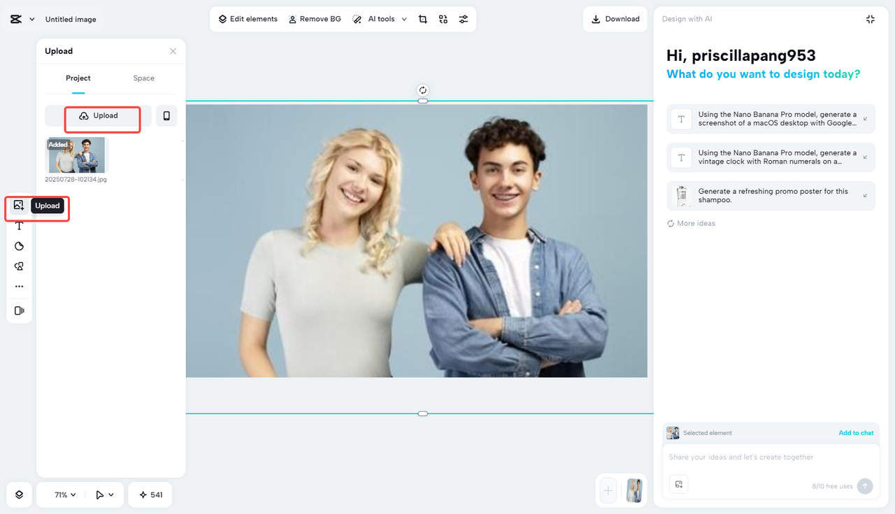 - Create a canvas and upload your photo